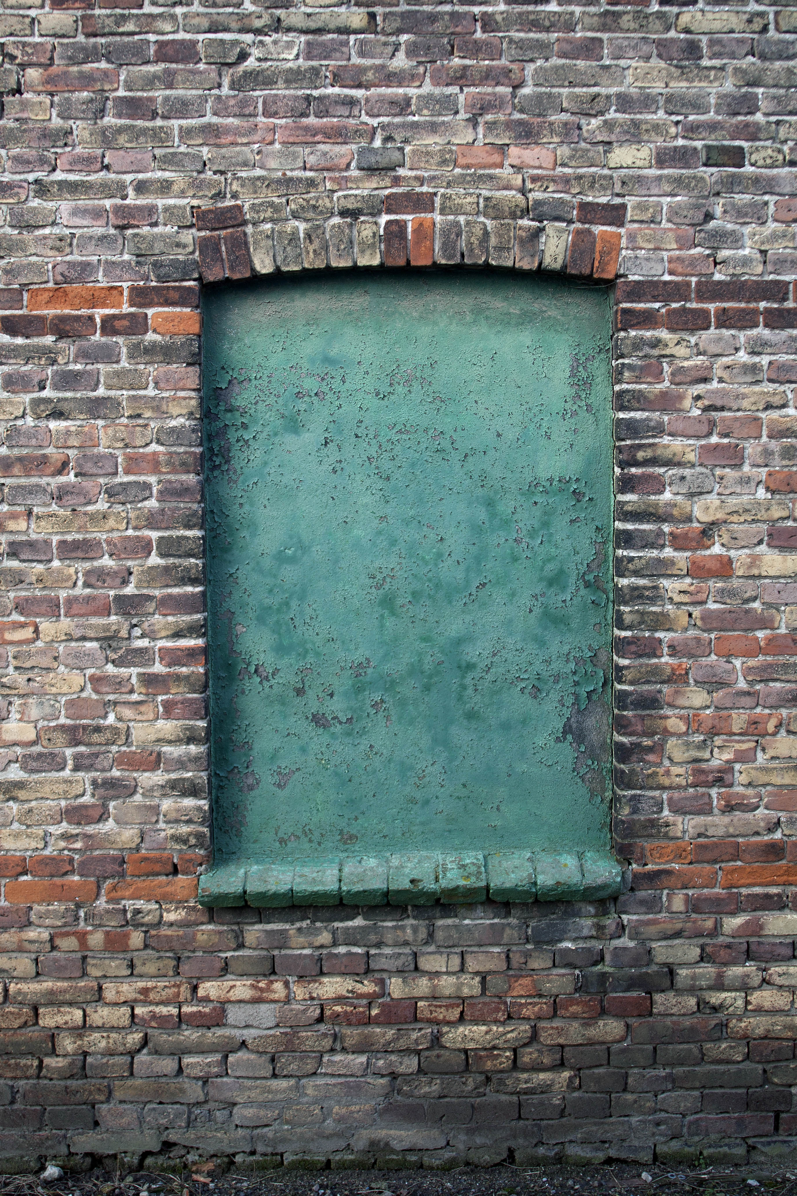 Windowsill made of bricks. Worn yellow and red brickwork around.Photo from Korsør, Denmark.Size: 2751 x 4126 pixels.