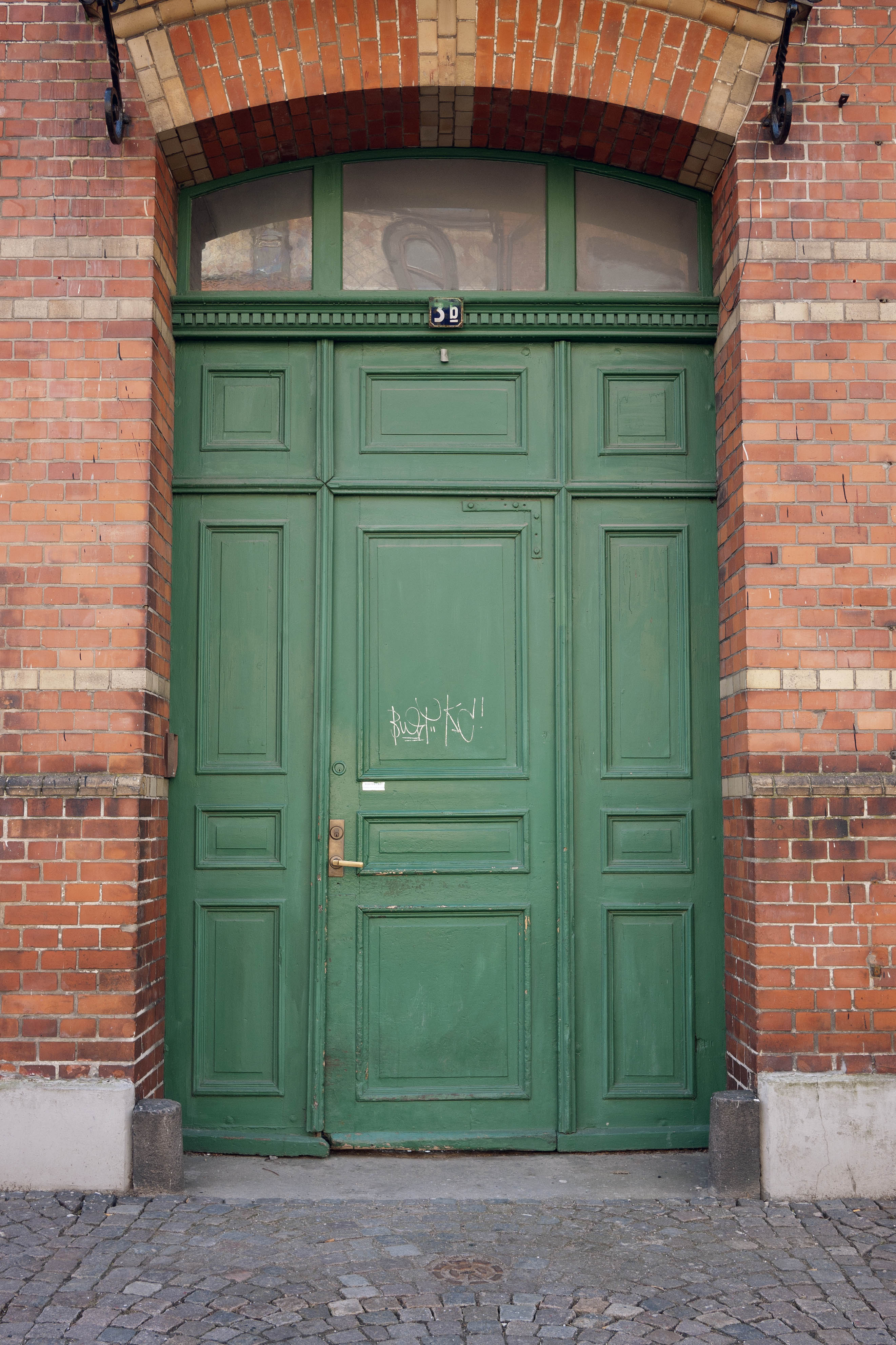 Fan light with three matted panes. Mounted in a red and yellow brick wall.Photo from Lund, Sweden.Size: 2643 x 3964 pixels.