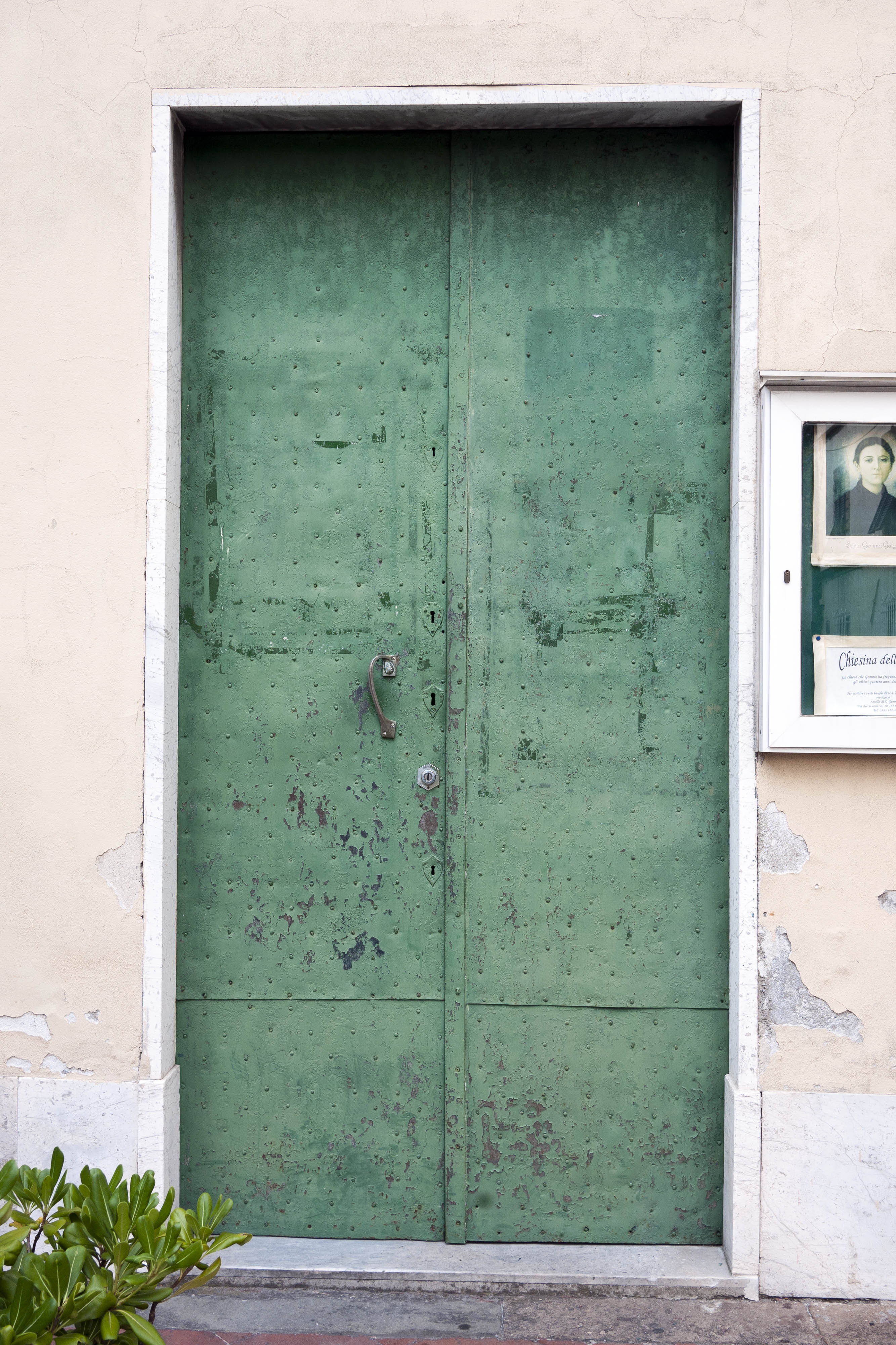 Photo 14812: Worn, green metal double door