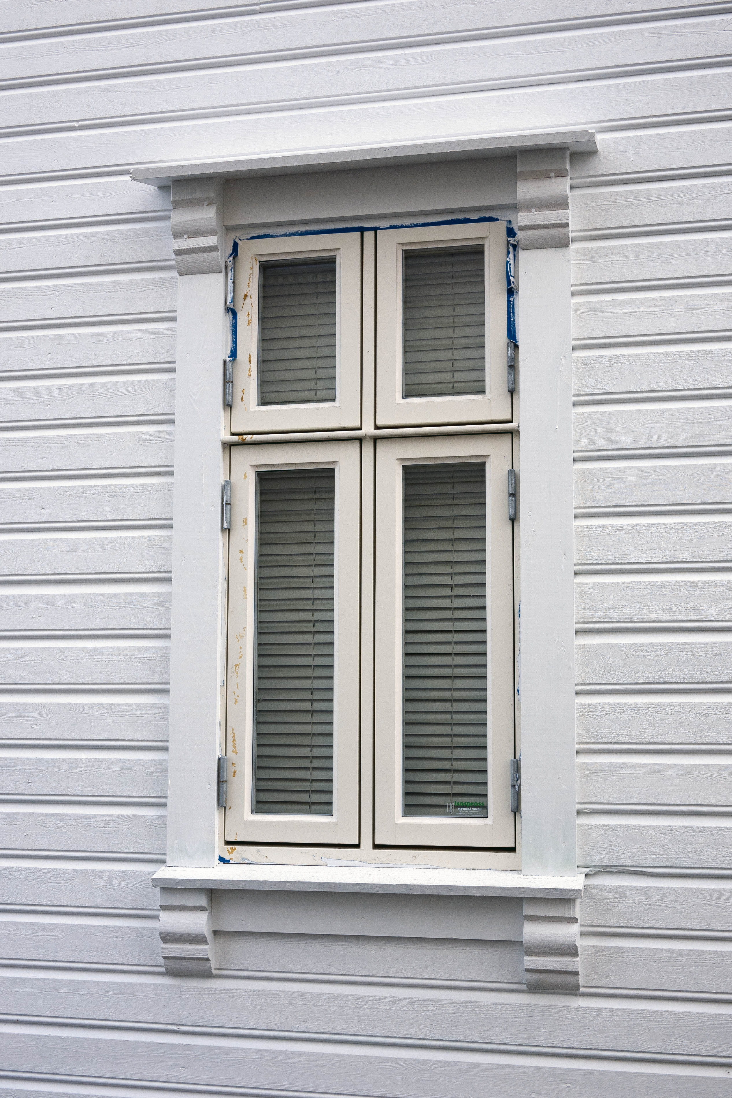 Photo 16693: Narrow, light yellow window with four frames.