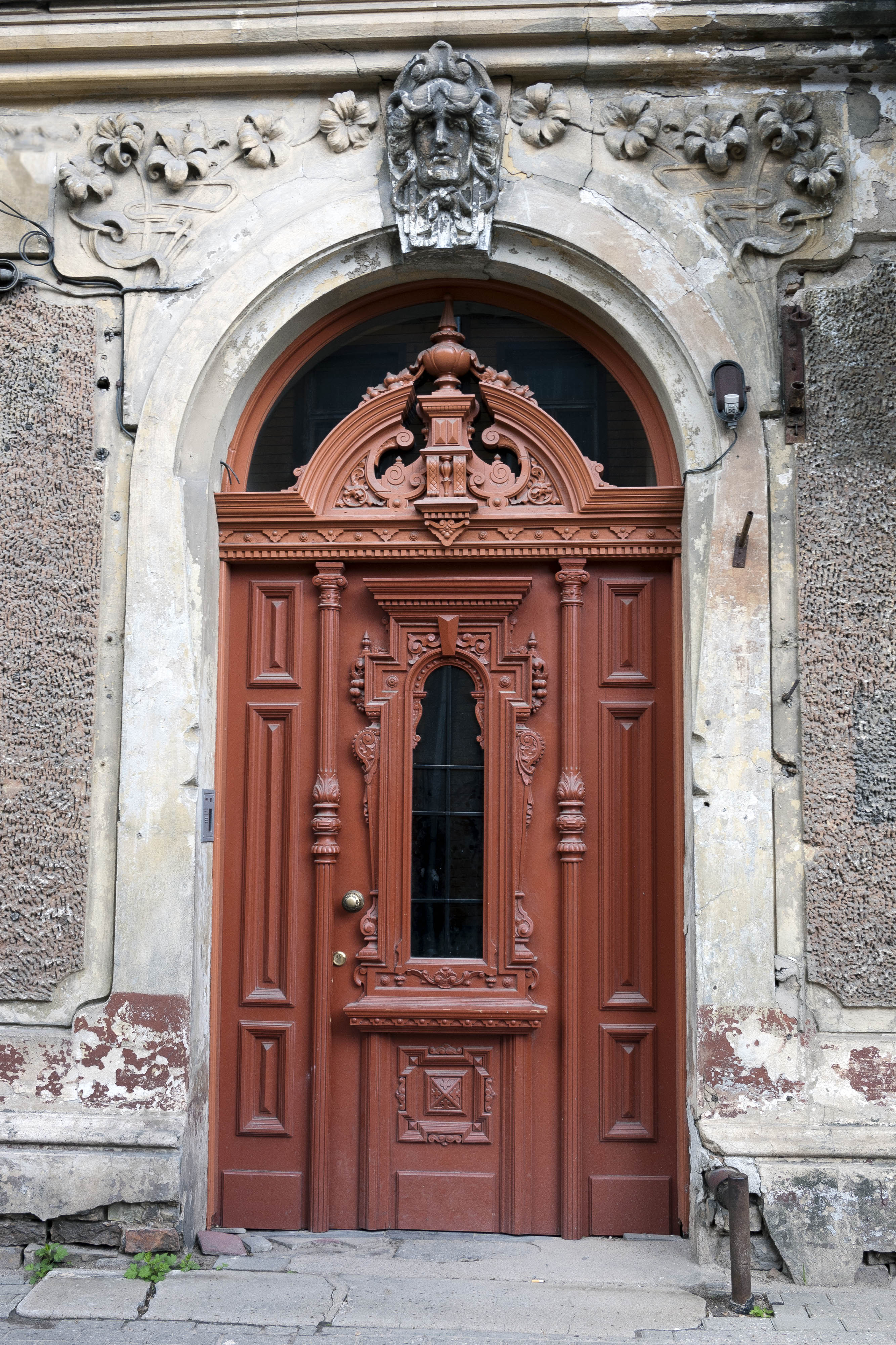 Well sustained. Mounted in a decayed, grey, plastered pilastre in a roughcast, brown wall.Photo from Riga, Latvia.Size: 2667 x 4000 pixels.