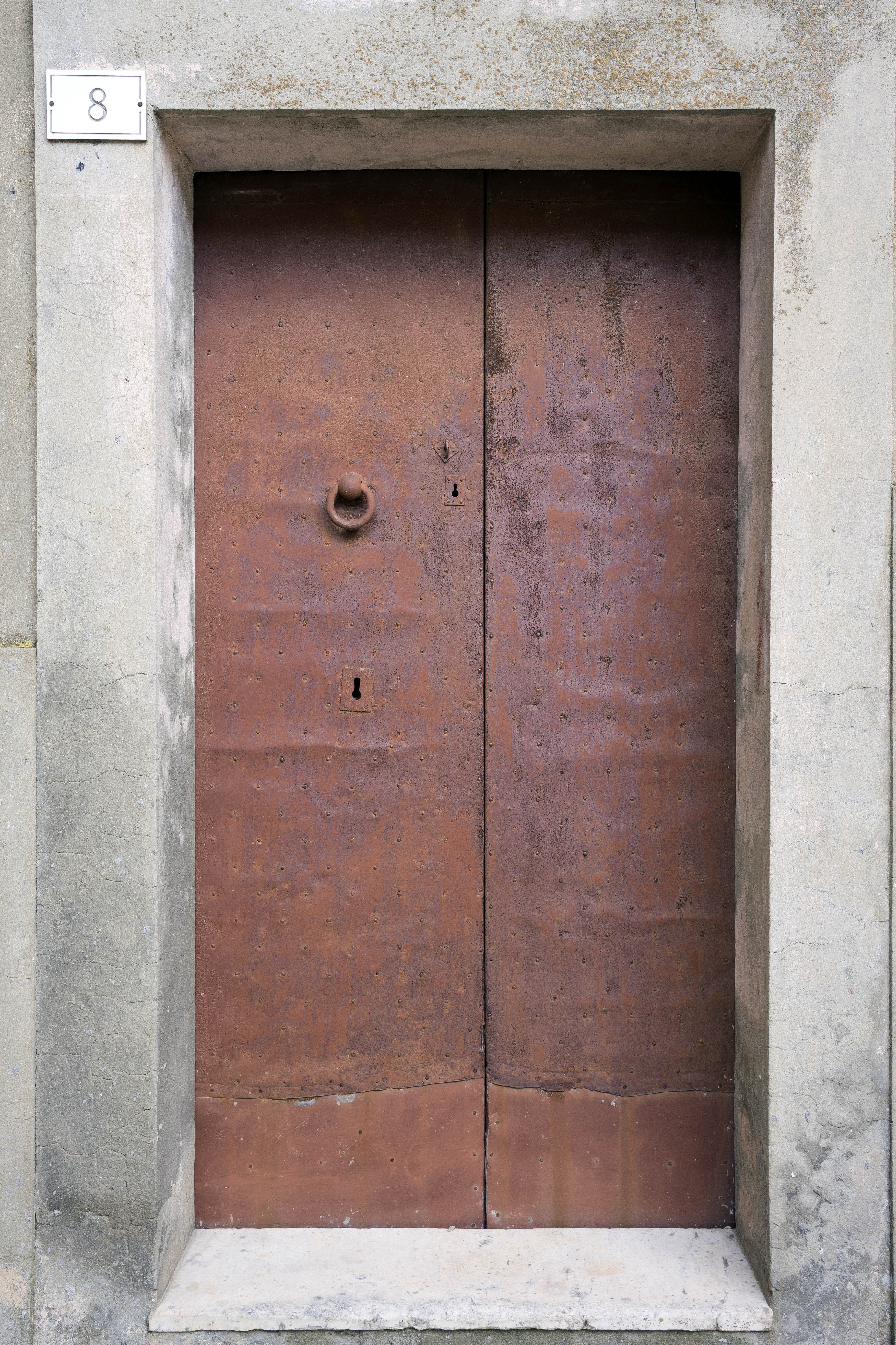 Photo 24647: Worn, red or brown double door of boards