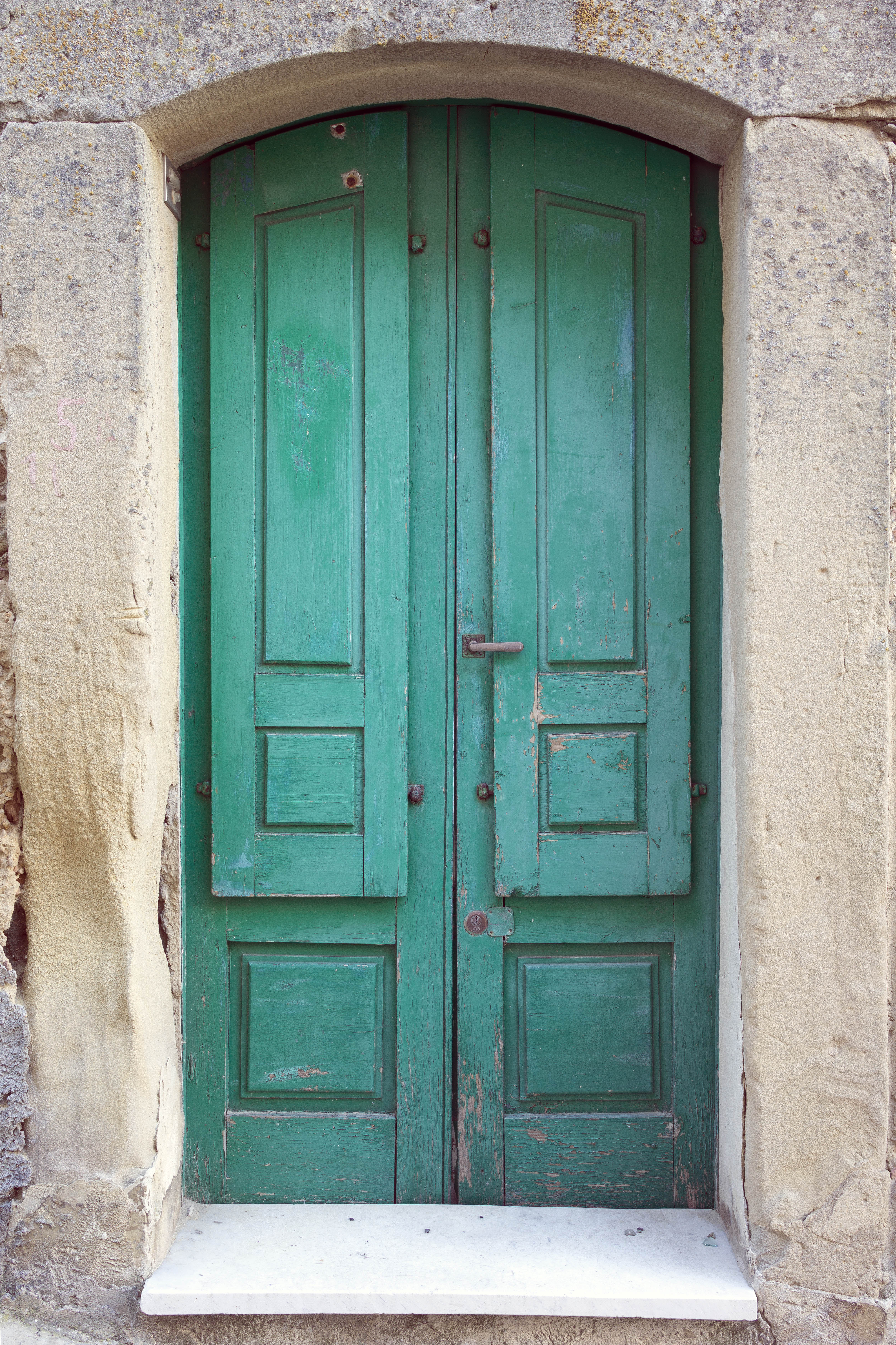 Photo 24700: Worn, formed, panelled, green double door