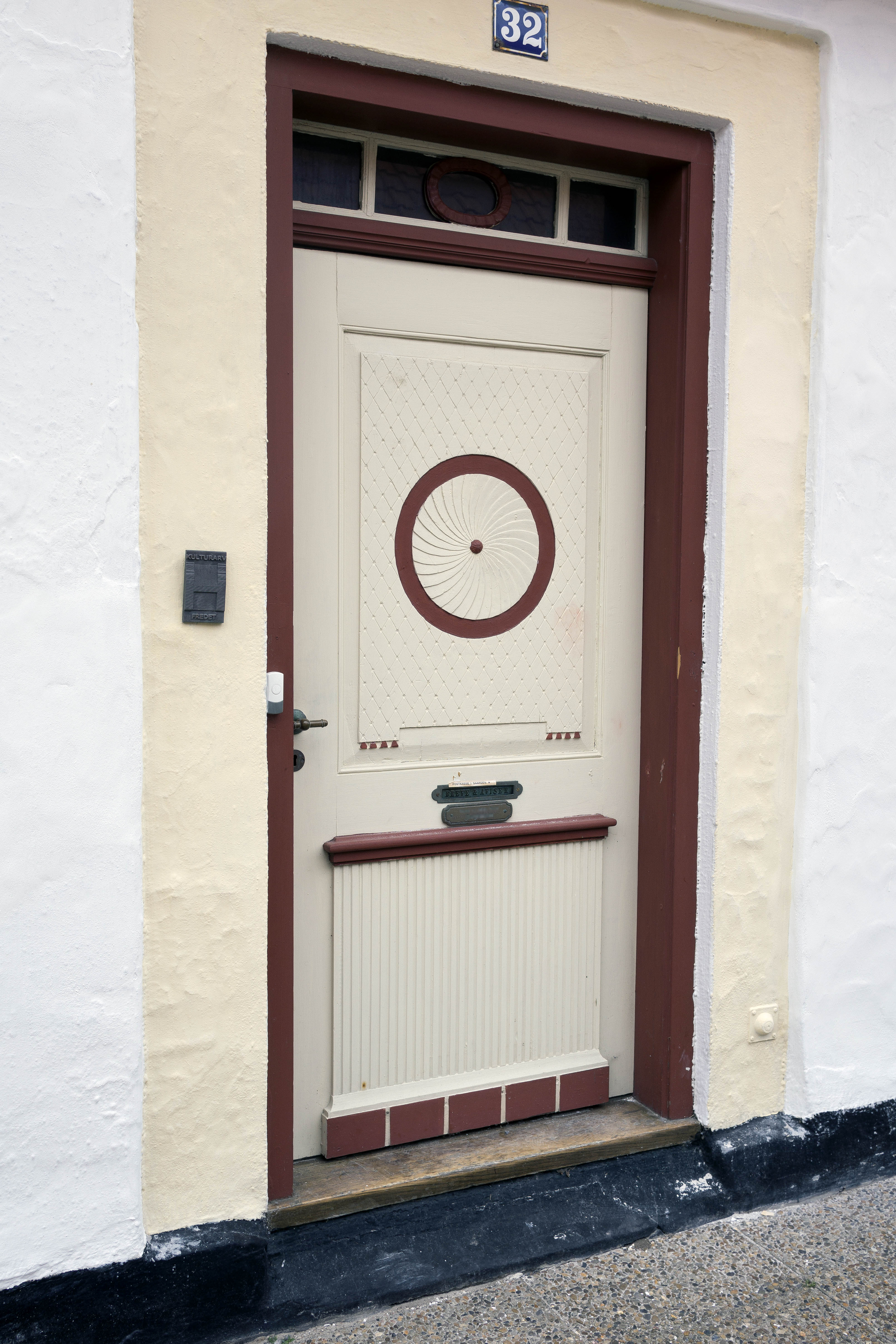 Mounted in a light yellow frame in a whitewashed wall. Well sustained.Photo from Sæby, Denmark.Size: 3944 x 5916 pixels.