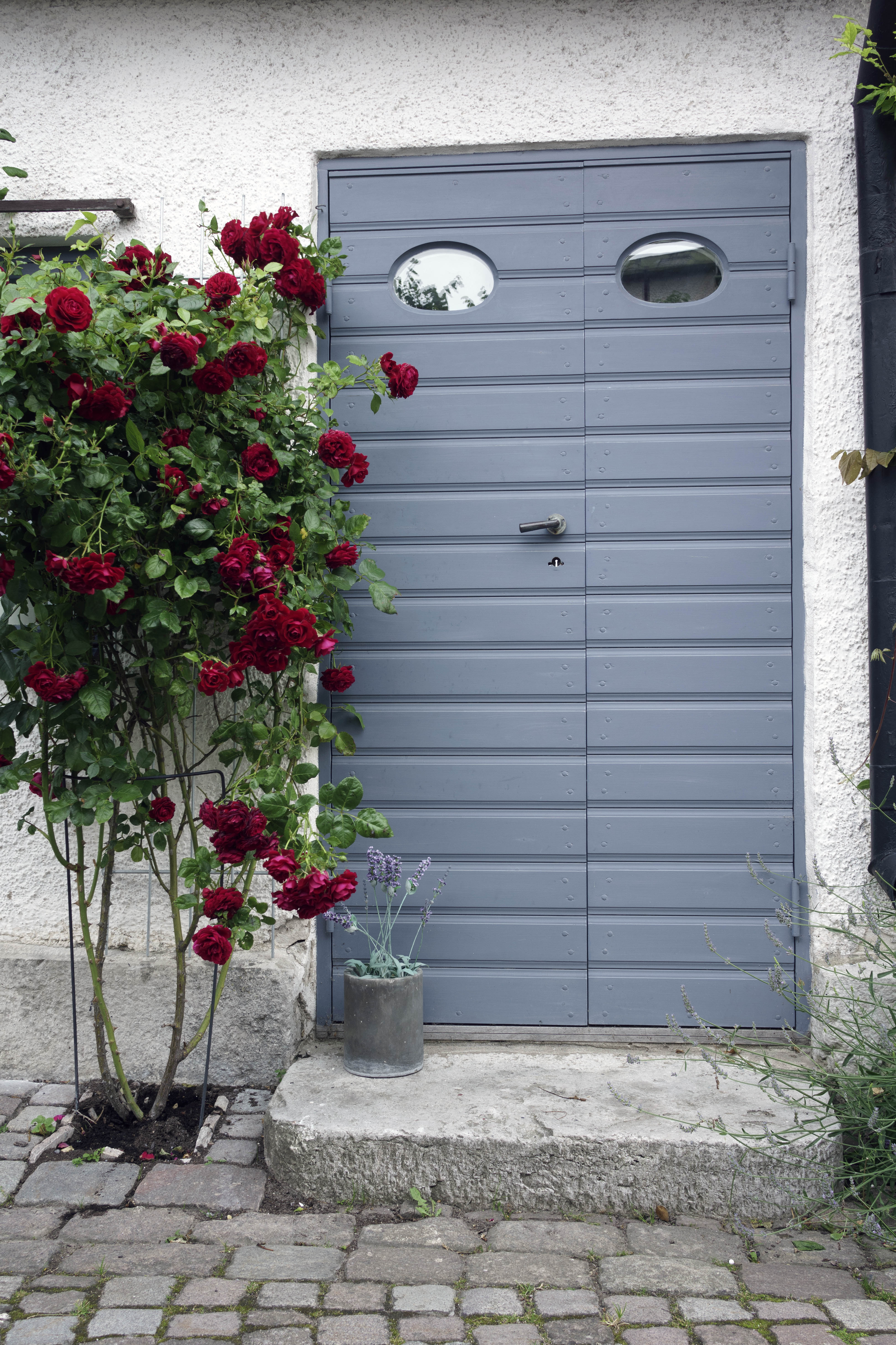 Mounted in a roughly plastered, white wall. Red roses in front.Photo from Visby, Sweden.Size: 3929 x 5894 pixels.