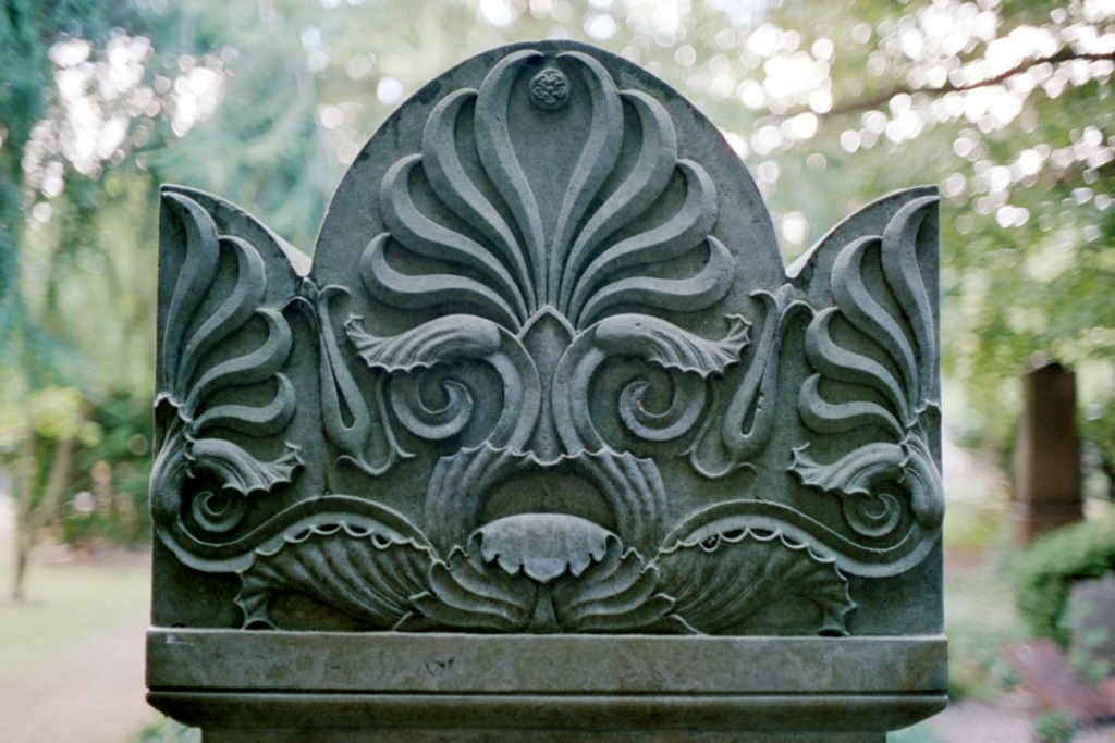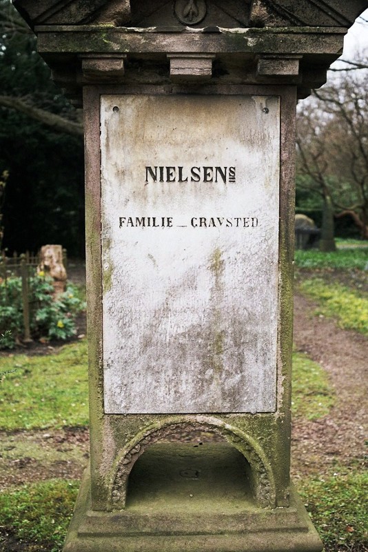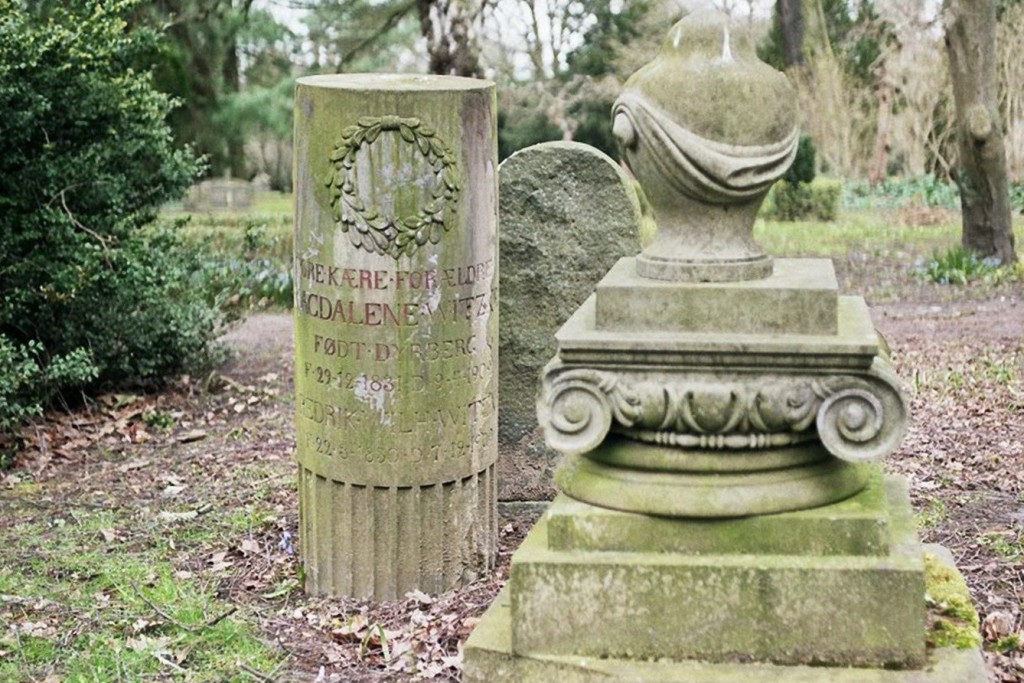 Assistens Cemetery is part cemetery, part a beautiful park for the inhabitants of Nørrebro in Copenhagen. Many graves are very old and present the bourgeois inhabitants of Copenhagen. As the coffins are collapsing, the grave stones are leaning to one side or the other. The cemetery is described in Wikipedia, and the township offers several PDFs somewhere on www.kk.dk.