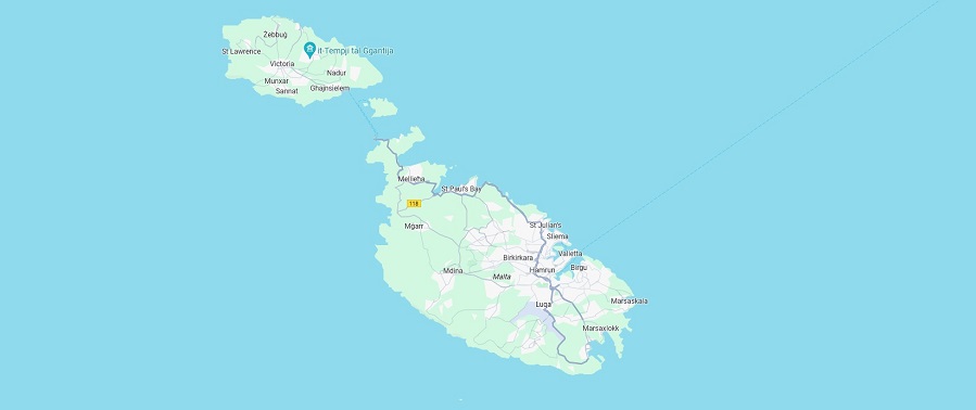 The route from east to west. Google Maps.