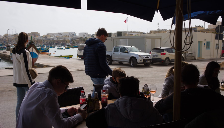 North side of Marsaxlokk Harbour, one of my favourite cafés