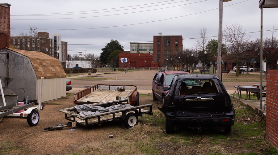 "American cities are like badger holes, ringed with trash — all of them — surrounded by piles of wrecked and rusting automobiles, and almost smothered with rubbish." (John Steinbeck). Clarksdale, Mississippi.