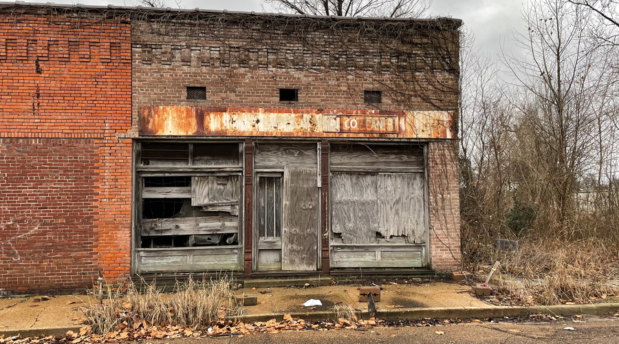 "When a city begins to grow and spread outward, from the edges, the center which was once its glory is in a sense abandoned to time. Then the buildings grow dark and a kind of decay sets in; .. all the energy has flowed out to the new developments .." (John Steinbeck). Clarksdale, Mississippi.